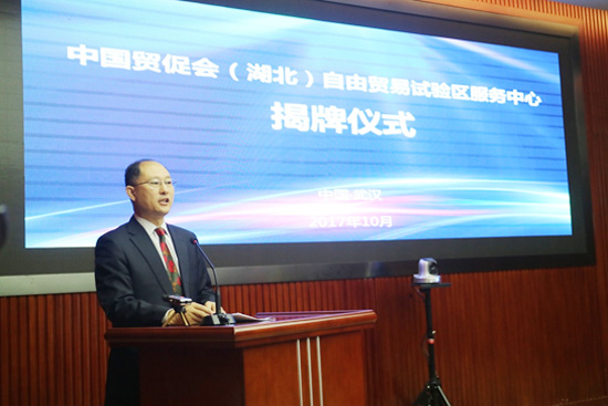 2017年10月13日上午,中国贸促会(湖北)自由贸易试验区服务中心在汉揭牌。中国贸促会在全国11个自贸试验区中的第四个服务中心在武汉正式设立。