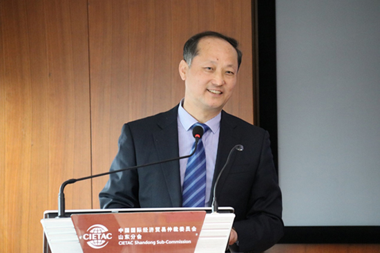 (贸仲仲裁院副院长兼山东分会秘书长解常晴致辞)